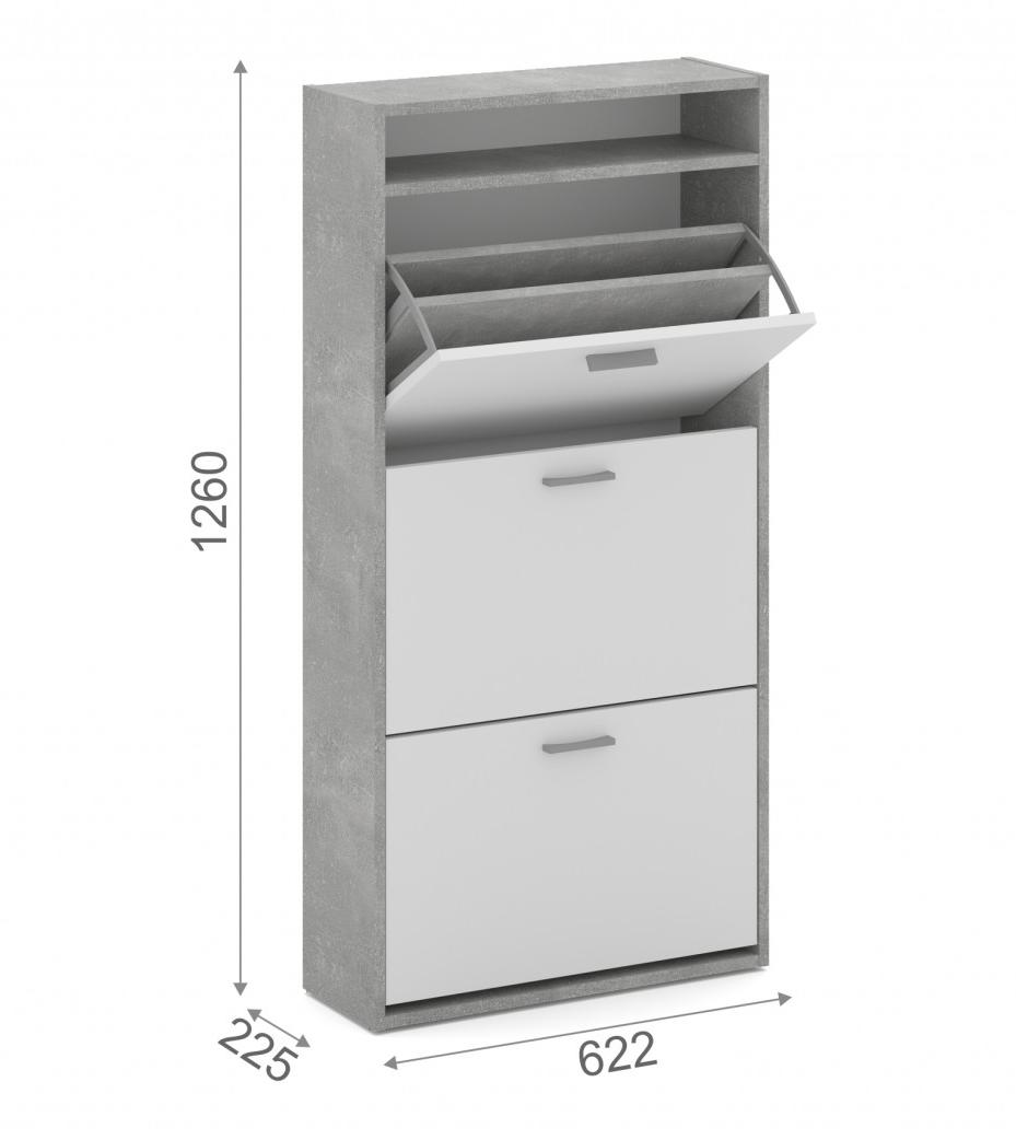 Лаконичная и функциональная тумба в стиле лофт оборудована вместительными отделениями для хранения сезонной обуви. Отделения удобно открываются сверху для полного обзора всего содержимого. Полки легко поддерживать в чистоте, протирая их влажной салфеткой. Современный дизайн и нейтральные цвета модели позволят органично вписаться в любой интерьер.