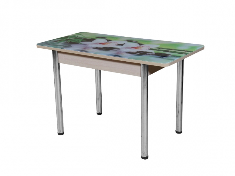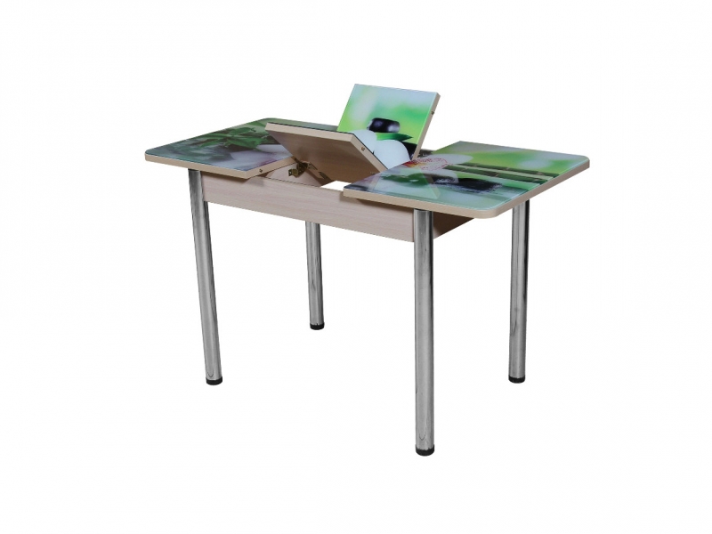 Раздвижной обеденный стол "Триумф" имеет ножки из массива дерева и столешницу 26 мм, покрытую стеклом с фотопечатью. Механизм синхронного раздвижения столешницы и центральная вставка - "бабочка". Стекло закаленное, ударо- и жаропрочное. При производстве столов применяется уникальная технология окрашивания вжигаемой в стеклянную поверхность керамической краски, которая становится его частью и не снимается даже под механическим, химическим воздействием.