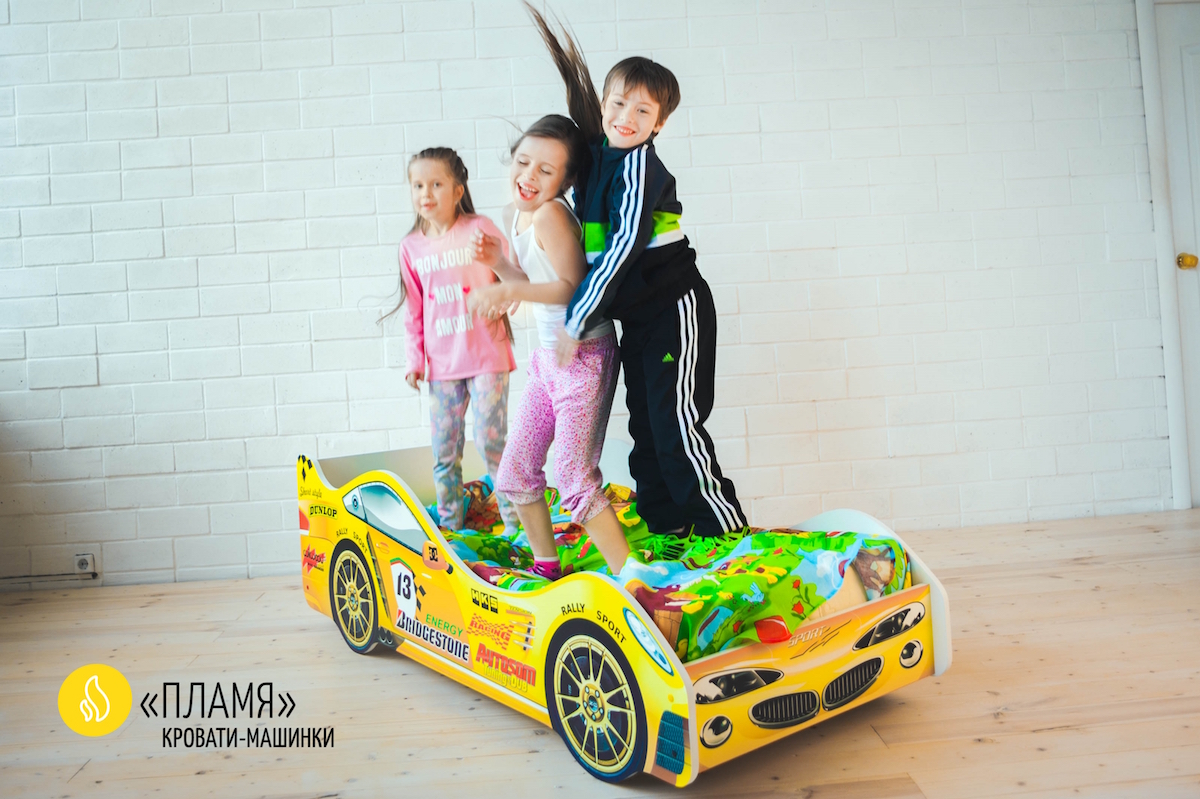 Кровать-машинка Пламя привлекает к себе внимание с первого взгляда. Дизайн гоночного автомобиля и яркая расцветка обязательно полюбятся мальчишкам от 2 до 12 лет. Для того, чтобы добиться большей схожести с настоящей машиной, модель можно оснастить пластиковыми объемными колесами, а для создания необычного эффекта установить на днище кроватки светодиодную подсветку. Кроме того, мы предлагаем дополнительно приобрести ортопедический матрас, выбрав степень жесткости для комфортного и здорового сна.