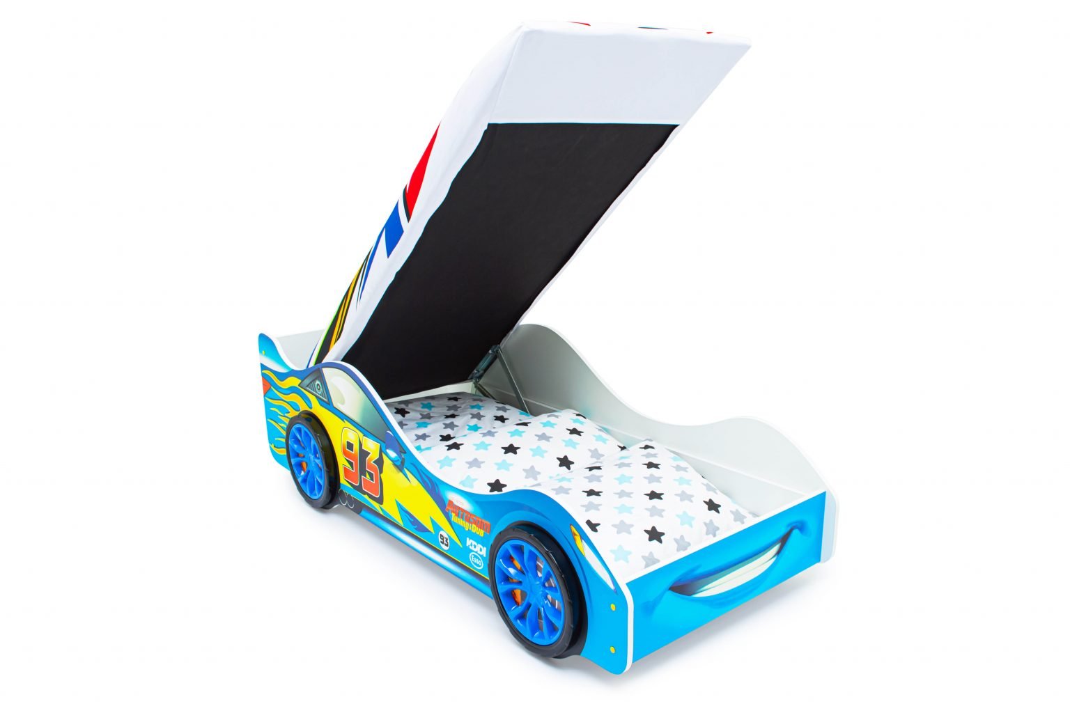 Детская кровать-машина “Тачка синяя” с подъемным механизмом станет любимым местом для сна и игр мальчика или девочки от 2 до 10-12 лет.