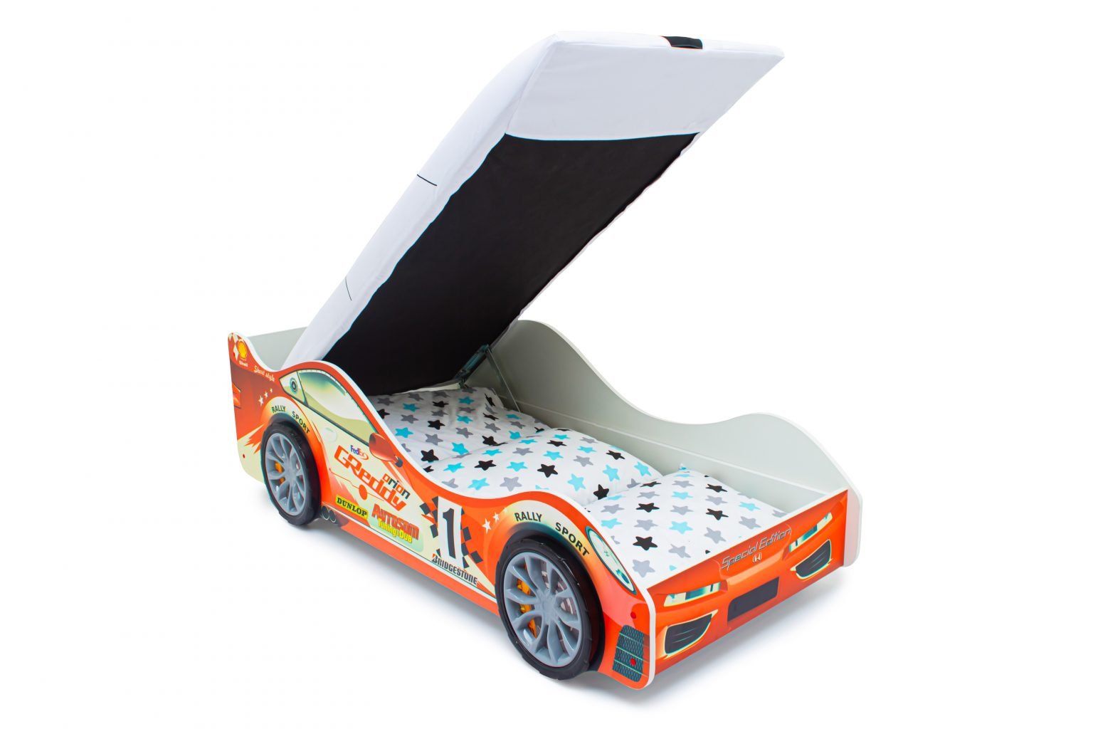 Детская кровать-машина “Стрела” с подъемным механизмом станет любимым местом для сна и игр мальчика или девочки от 2 до 10-12 лет.