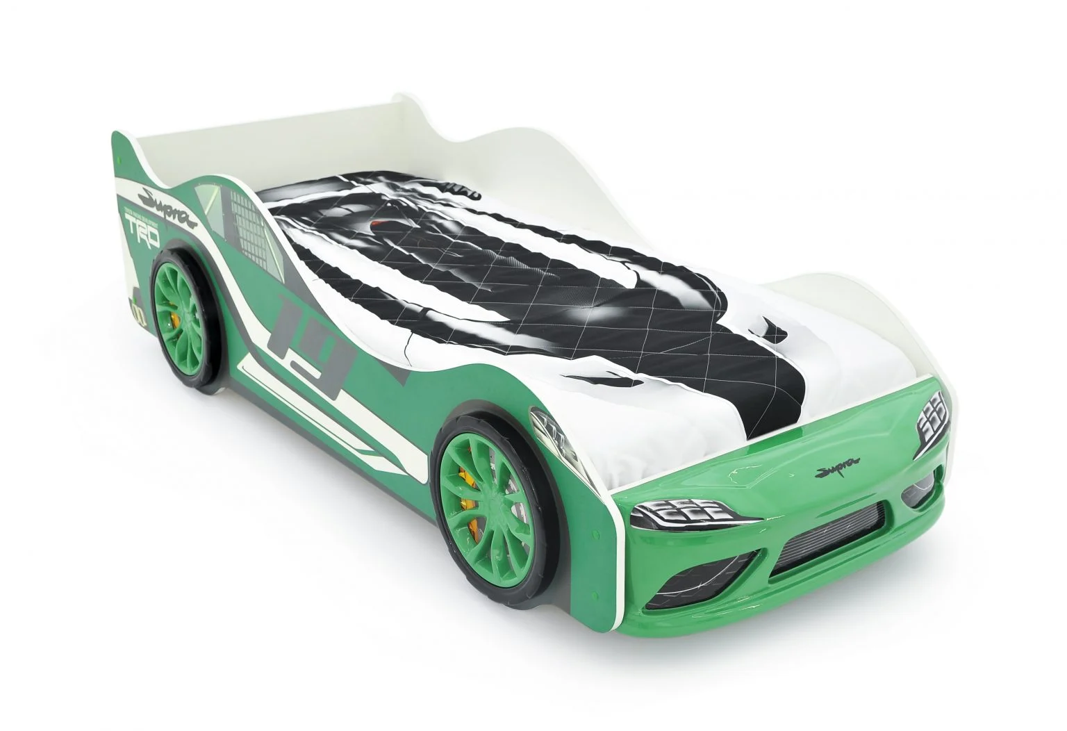 Детская кровать-машина “Супра” зеленая украсит любую детскую комнату. Кровать-машинка станет любимым местом для сна и игр мальчика или девочки от 2 до 10-12 лет.