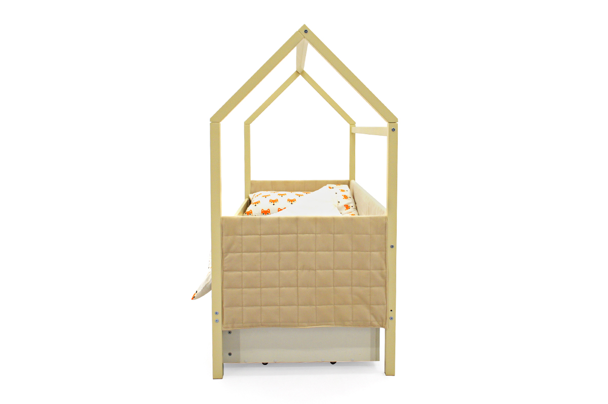 Кровать-домик легко превращается в целый замок для игр с помощью разноцветных тематических игровых накидок. Текстильная крыша на домике создаст ребенку уют и защищенное пространство.