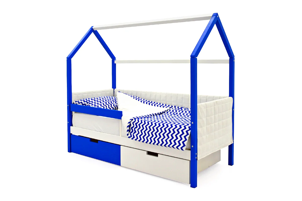 Детская мягкая кровать-домик Бельмарко “Svogen сине-белый” станет любимым местом для сна и игр мальчика или девочки от 2 до 10-12 лет.