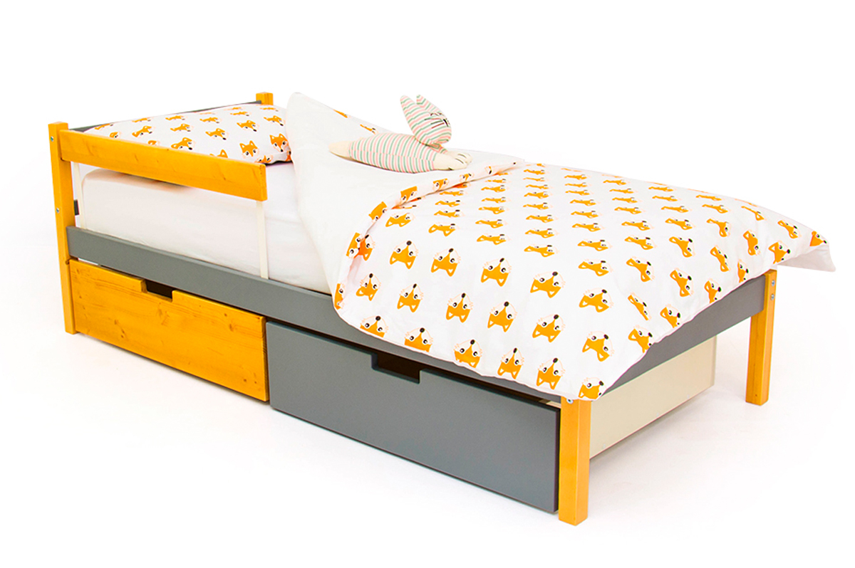 Для обеспечения безопасности малыша во время сна можно приобрести съемный бортик. Особенность его в том, что он закрывает кровать не по всей длине, а только ее часть, благодаря такому конструктиву, ребёнок легко сможет сам забираться на свое спальное место.