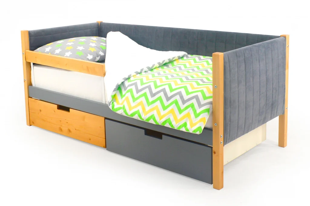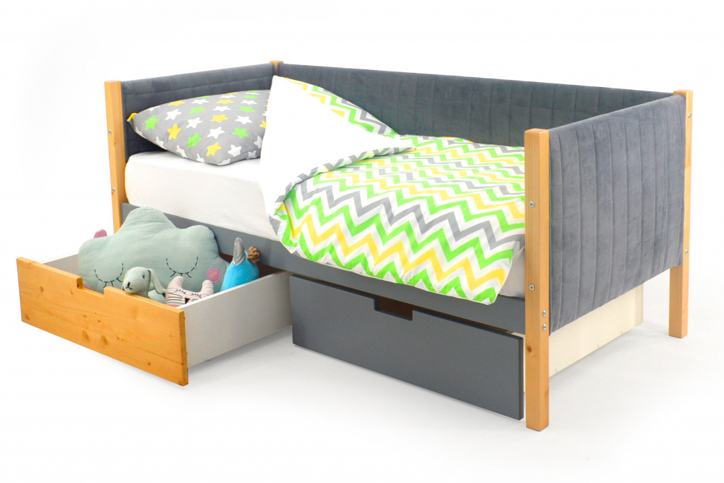 Детская мягкая кровать-тахта Бельмарко “Svogen дерево-графит” станет любимым местом для сна и игр мальчика или девочки от 2 до 10-12 лет.
