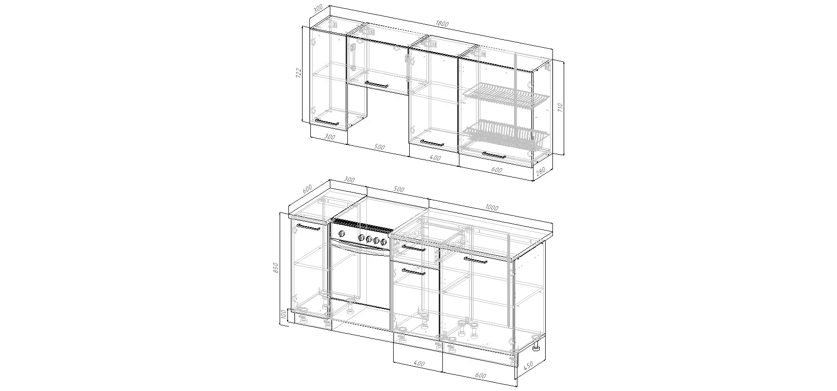 Кухня 1800 мм под отдельно стоящую плиту
