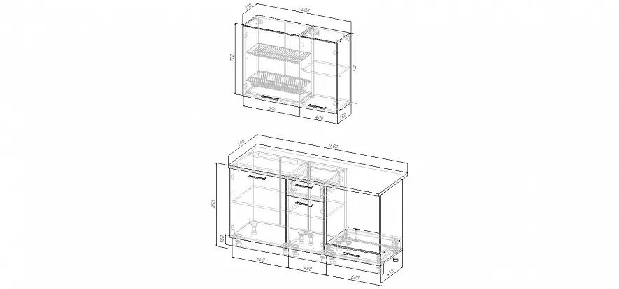 ВС760 Модуль верхний с посудосушителем (ШхГхВ) 600х300х710мм -1 шт