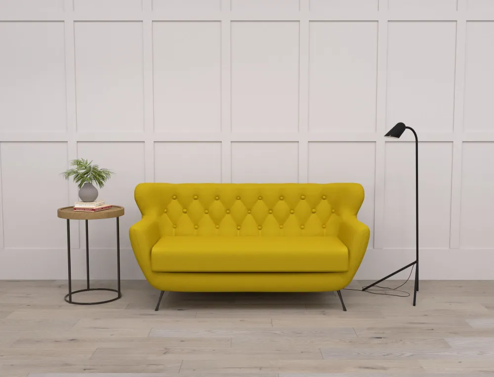 Металлические хромированные ножки позволяют диванчику выглядеть еще более легким и невесомым, чем он есть на самом деле. А каретная стяжка на спинке, выполняется вручную, что делает каждый диван Вивальди уникальным.
