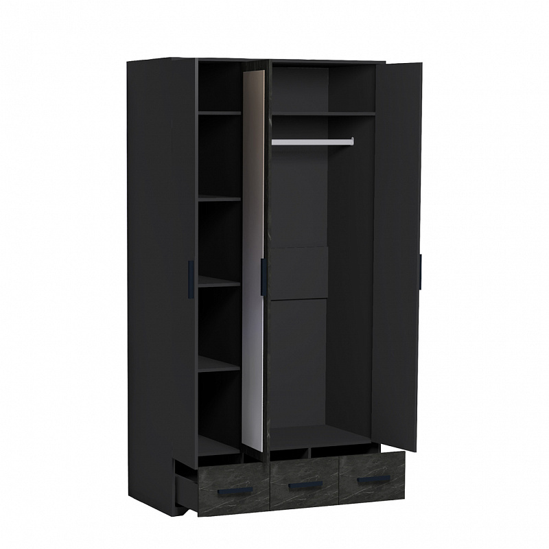 Трехстворчатый шкаф для одежды и белья Айрис 444 с зеркалом и выдвижными ящиками — находка для большой и маленькой спальни. Функциональное наполнение шкафа разделено, что очень удобно для зонирования гардероба всех членов семьи. Шкаф оснащен отделением для хранения белья с полками на скрытых полкодержателях и отделением для одежды со стационарной штангой 758 мм. 3 выдвижных ящика комплектуются шариковыми направляющими, что обеспечивает минимальный люфт ящиков и максимальное использование их площади.