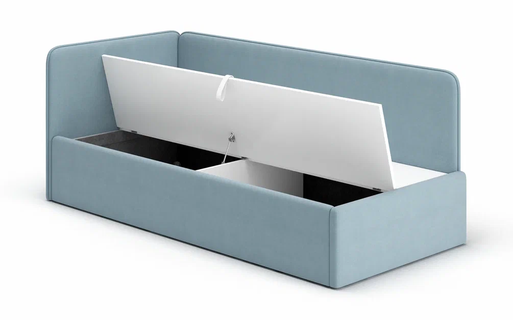 Вместительный ящик-книжка позволит хранить не только постельное бельё, но и игрушки. Дно ящика выполнено из ЛХДФ, борта - ДСП, обшитые файбертексом, разделитель – ЛДСП.