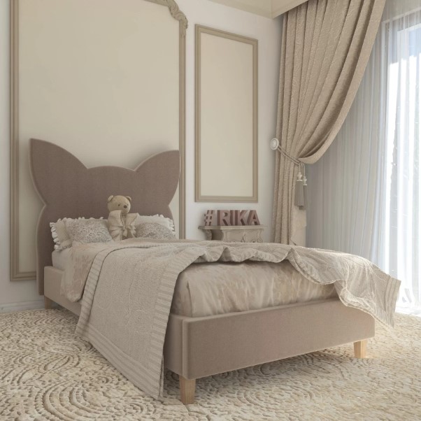 При изготовлении кровати использованы качественные материалы. Каркас кровати выполнен из соснового бруска камерной сушки. Мягкость боковин и высокой спинки обеспечивает безопасный для здоровья наполнитель – ППУ и синтепон.