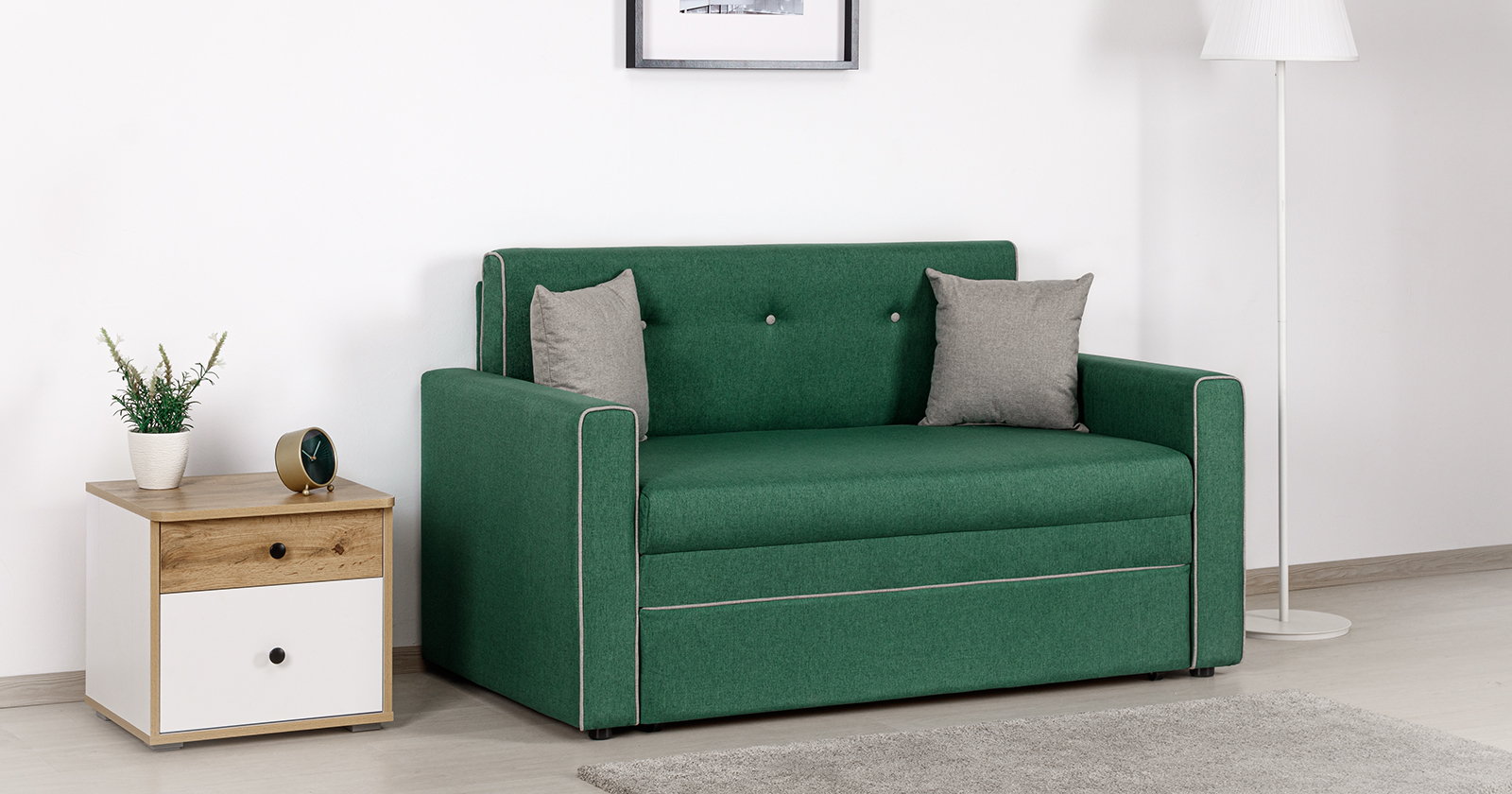 Диван-кровать Найс - компактное современное решение для гостиных, квартир-студий, детских и подростковых комнат. Может использоваться в качестве постоянного спального места для детей и подростков или гостевого спального места взрослого.