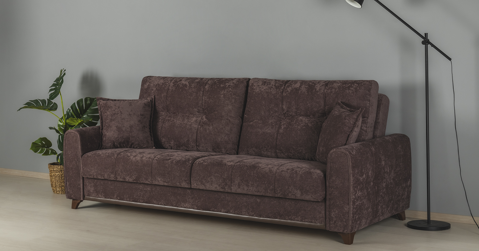 Плимут - современный диван с комфортной посадкой. Может быть дополнен креслом Плимут. Удачно впишется в любой современный интерьер благодаря универсальному дизайну и трендовым цветам обивки. При разложении не требует отодвигания от стены. Обеспечит полноценным ровным спальным местом двух человек.