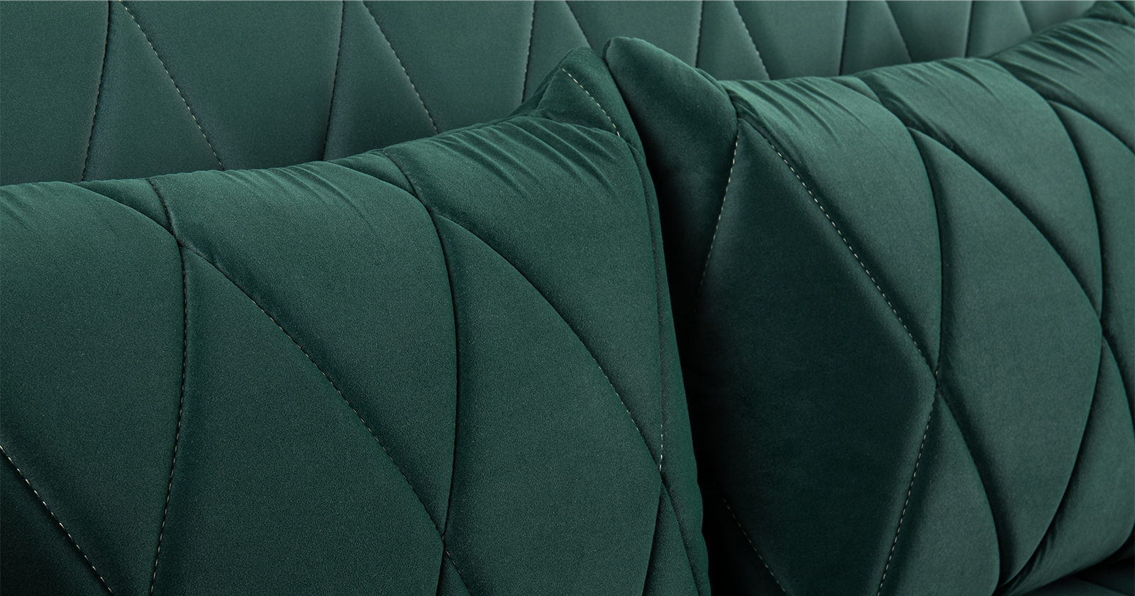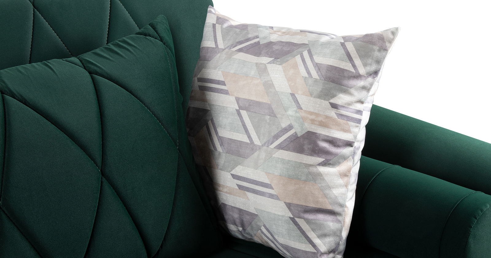 Декоративные подушки выполнены из микровелюра с геометрическим орнаментом в духе актуальных макро-трендов.