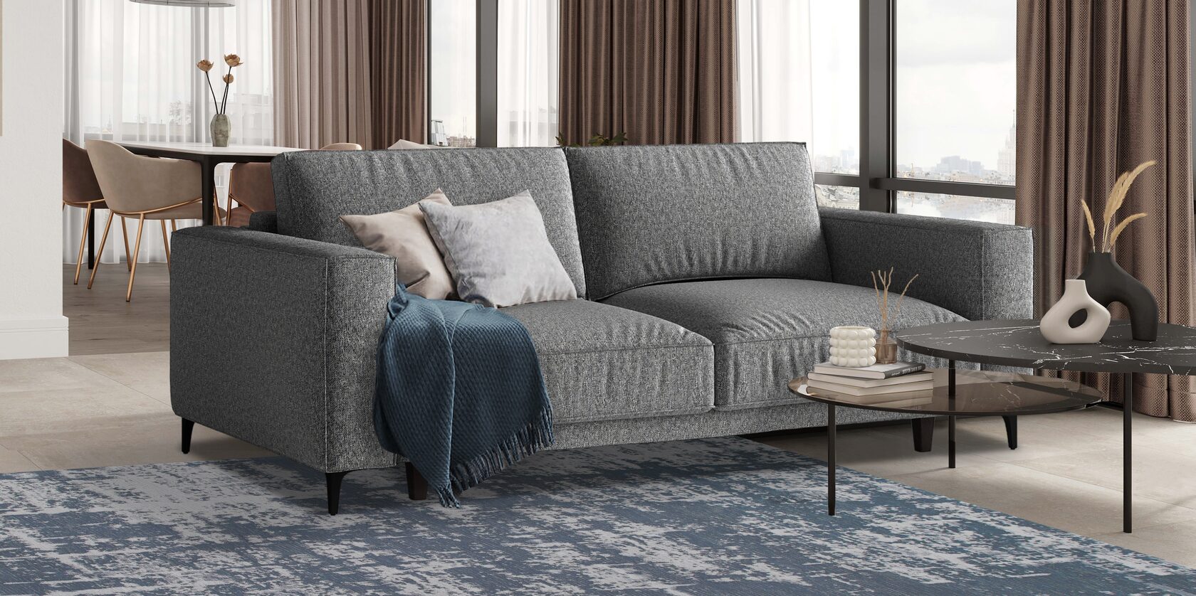 Прямой диван Ромео - новая дизайнерская модель, выполненная в скандинавском стиле, идеально подходит для современных интерьеров. Строгий дизайн и сдержанный декор отлично смотрятся и привлекают внимание. Интерьерный диван Ромео имеет оригинальные боковины.