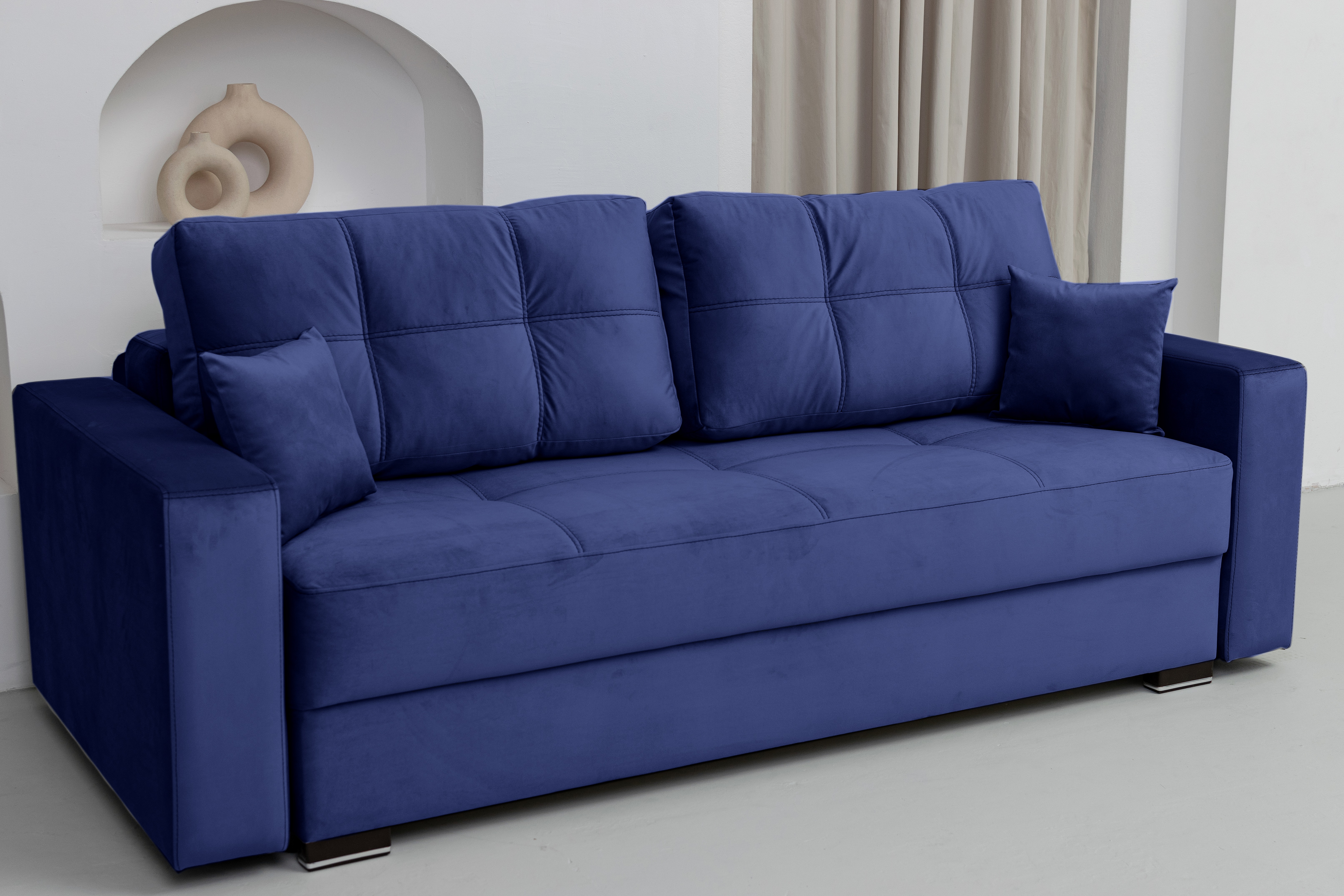 Модель сочетает в себе: большое спальное место со встроенным ортопедическим матрасом, оригинальный дизайн, мягкие глубокие сиденья, эргономичные подлокотники, безупречное исполнение, удивительный комфорт и адекватную стоимость. Диван без компромиссов!