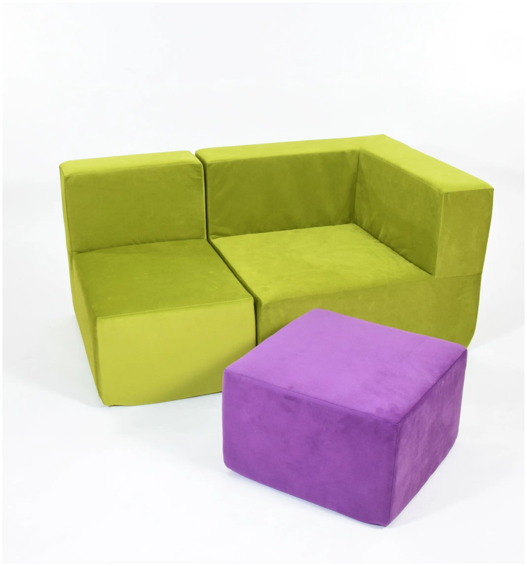 Изделие выполнено из мягкого мебельного велюра с эффектом атикоготь, внутри сформировано на блоках упругого эластичного прочного поролона.Съемный верхний чехол можно снять и деликатно почистить. Низ изделия выполнен из плотной смесовой ткани с водоотталкивающим эффектом.Все изделия очень легкие и позволят передвигать и расставлять модули свободно как взрослому так и ребенку. Отсутствие острых углов и каркаса из дерева обеспечивает безопасность в использовании.