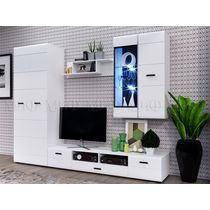 Гостиная также приобрела свои уникальные современные черты:декорирование вставками фасадов цвета Перламутр и элементами из матового стекла;надежные комплектующие европейских производителей гарантия качества и долгой службы;комплектация гостиной с вместительной тумбой для телевизоров с диагональною до 75 дюймов;отсутствие лицевой фурнитуры. Все фасады и ящики открываются при помощи нажатия (система Push-to-open).