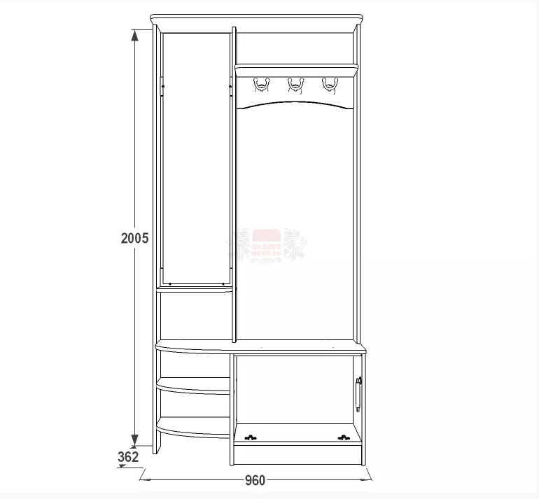Габариты (ВхШхГ): 2005х960х362 мм.