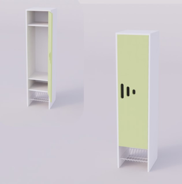 Красивый деревянный шкафчик для детской одежды и хранения вещей в группе. Можно выстроить целый ряд — насколько хватит свободной стены. Или используйте для маленьких раздевалок и там, где при меблировке нужно обходить инженерные выступы.