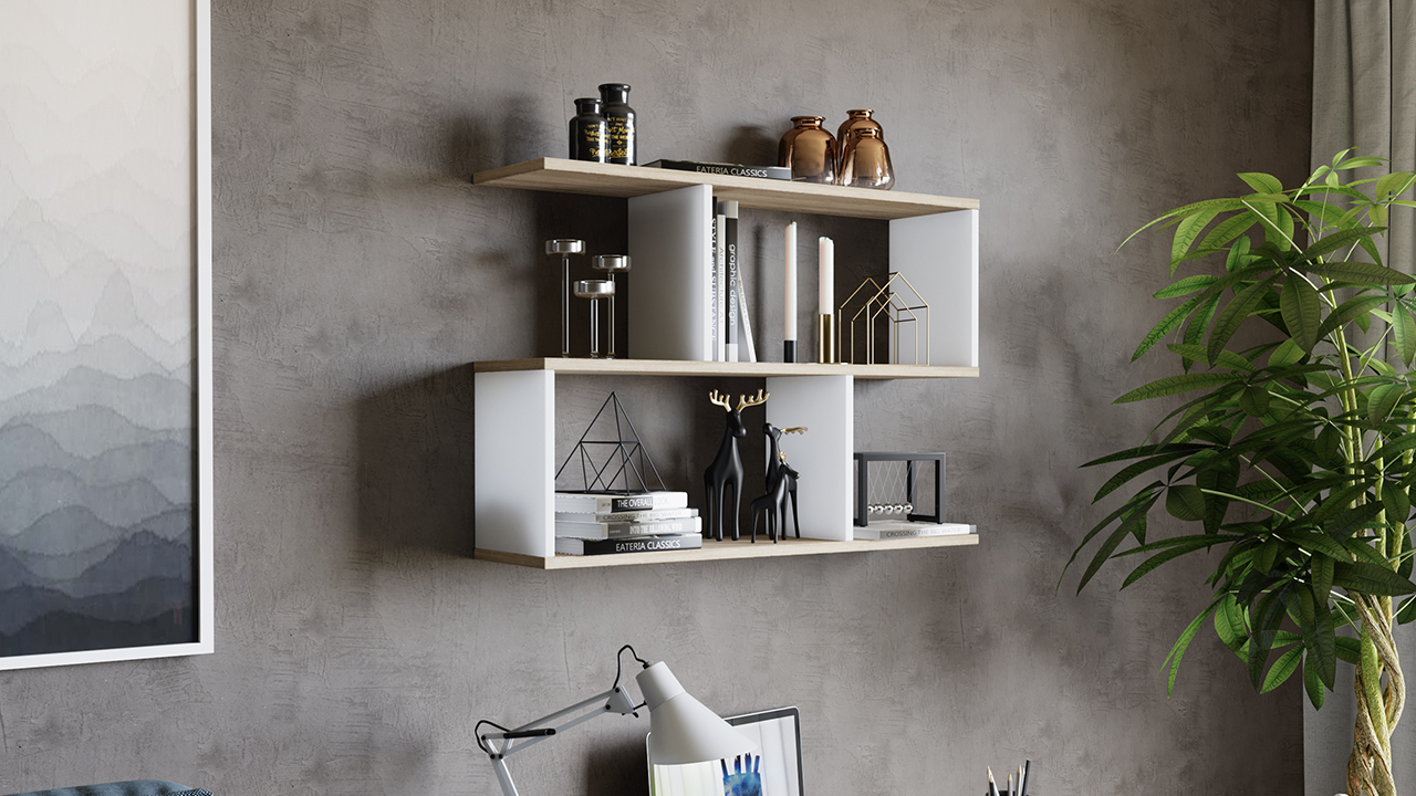 Полка настенная тип 14 Дуб Сонома/Белый ясень