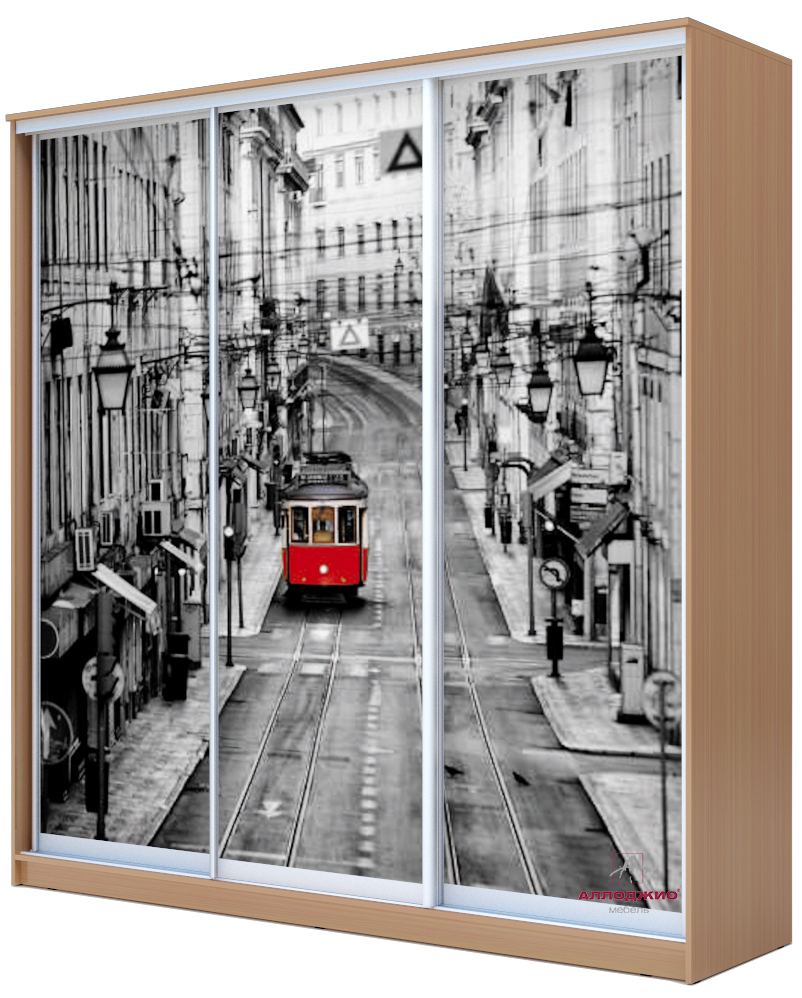 Шкаф оснащен тремя дверями-купе с наполнением из стекла 4 мм с полноцветной печатью.