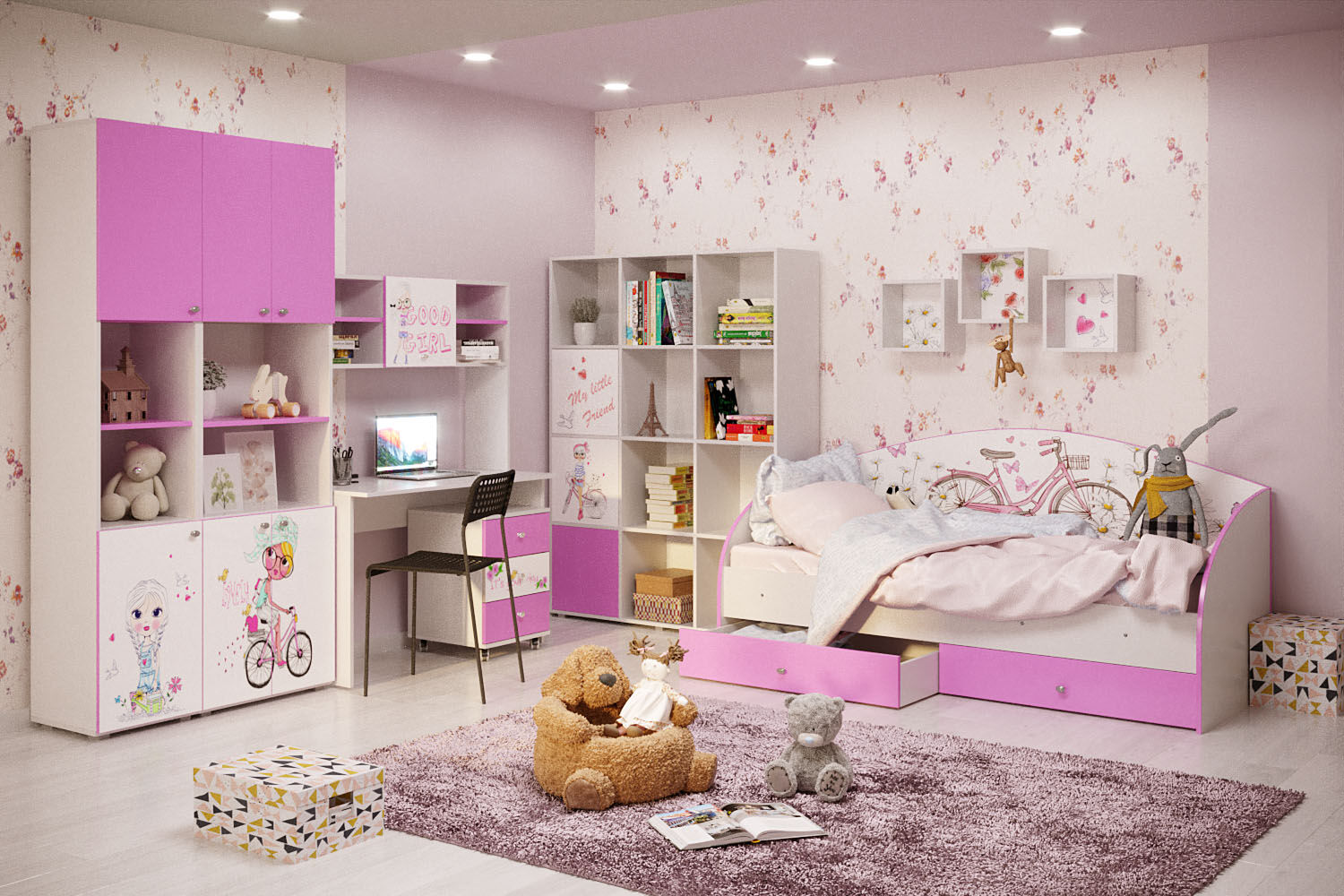 Модульная детская «Аннет» — идеальное решение для комнаты девочки. Многофункциональная, практичная, позволит разместить все необходимые вещи. Фотопринт обогатит интерьер и придаст настроение детской комнате.