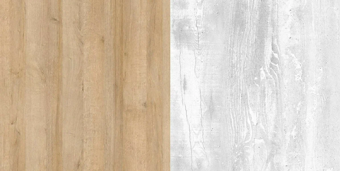 Материал: 16мм Корпус Дуб Крафт, фасад Бетон Пайн, ДВПО белый.