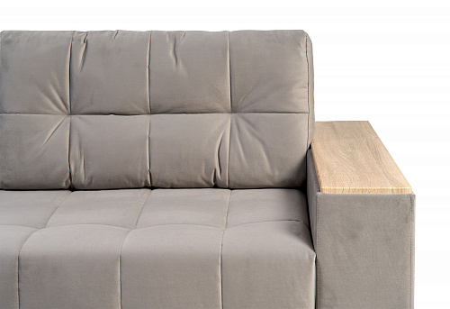 Огромным преимуществом данной модели, является наличие выкатного столика в одном из подлокотников, оснащённый доводчиком на закрывание. Во-втором подлокотнике находится ламинированный ящик, куда по необходимости можно сложить вещи.