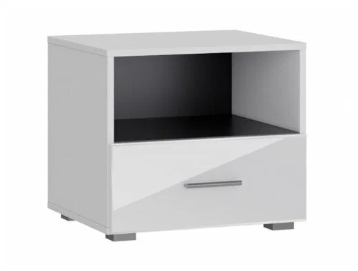 Прикроватная тумба Gloss функциональная и стильная модель подходящая под множество интерьерных решений. Помимо открытого верхнего отделения предусмотрен выдвижной ящик с бесшумными направляющими. Верх тумбы может быть применен в качестве журнального или ночного столика, на котором удобно разместить книгу и телефон или другие важные для вас предметы.
