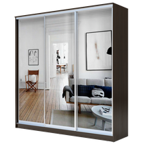 Шкаф-купе Берген декорирован серебряными зеркалами и оснащен двумя боковыми откатными створками. Материал ЛДСП, цветовое исполнение дуб делано/венге.