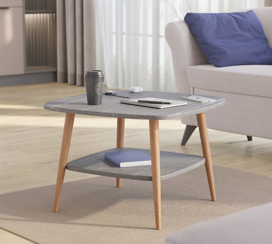 Стол журнальный Квадро Мрамор белый