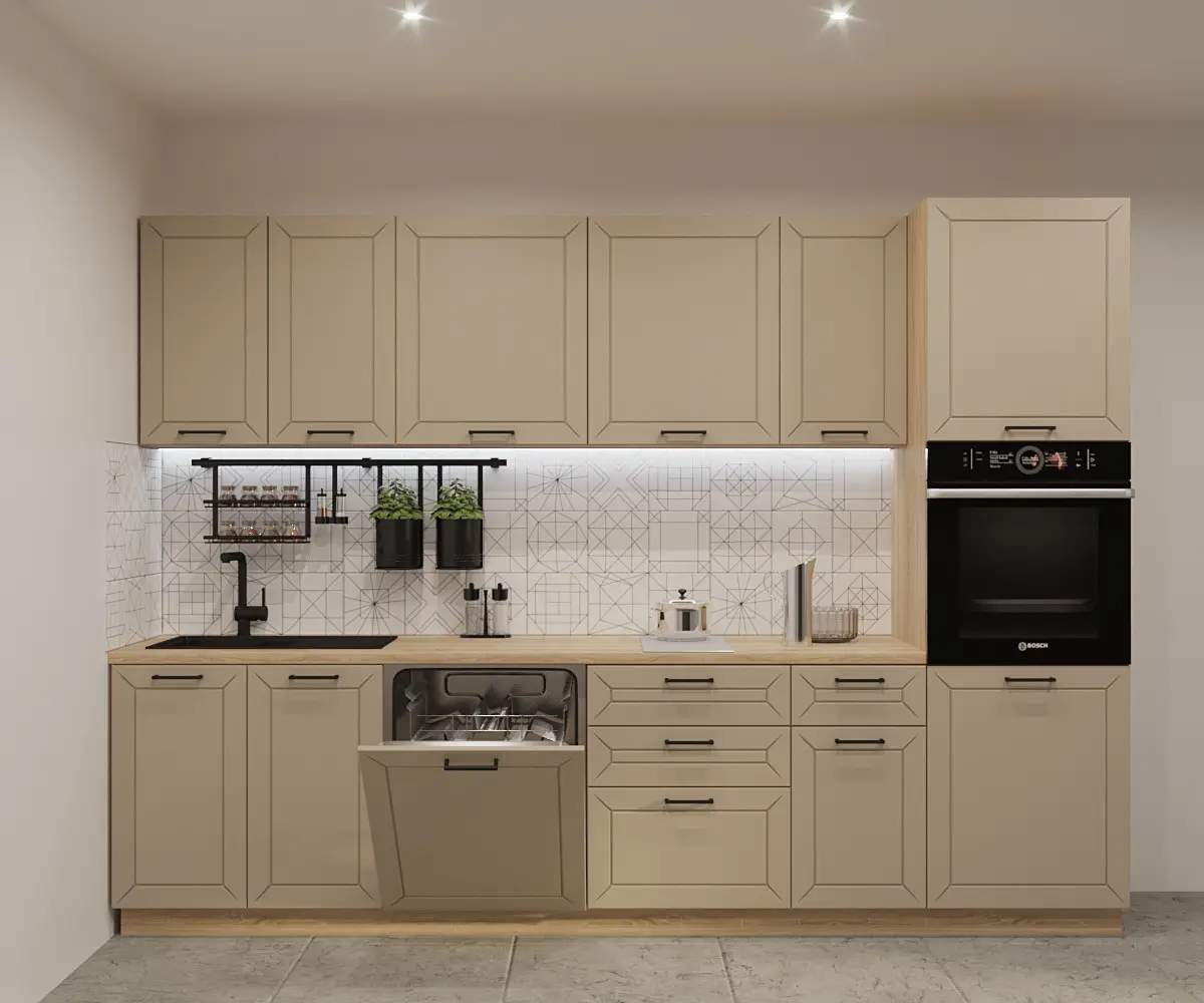 Бежевая кухня в интерьере — изысканный и универсальный выбор, который придает помещению нежность, уют, гармонию. Оттенки бежевого создают атмосферу спокойствия и природной теплоты. Они уместны в различных стилях — от классики до современности.