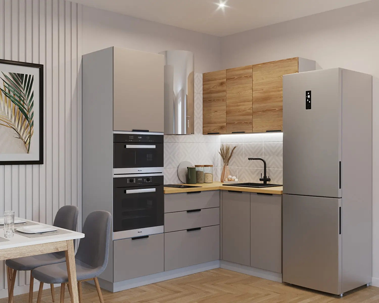 Магазин мебели «100Диванов» предлагает купить Кухонный гарнитур арт. 8 Обсидиан Рустик натур 2000х1400 в Лабытнанги по выгодным ценам от производителя с доставкой.