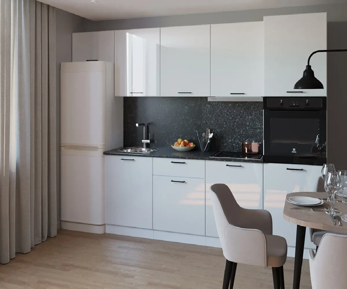 Белая глянцевая кухня неизменно пребывает на пике популярности. Она является настоящим олицетворением легкости, свежести и гармонии. В таком помещении даже воздух покажется более чистым, а солнечный свет наполнит ярким сиянием каждый ее уголок.