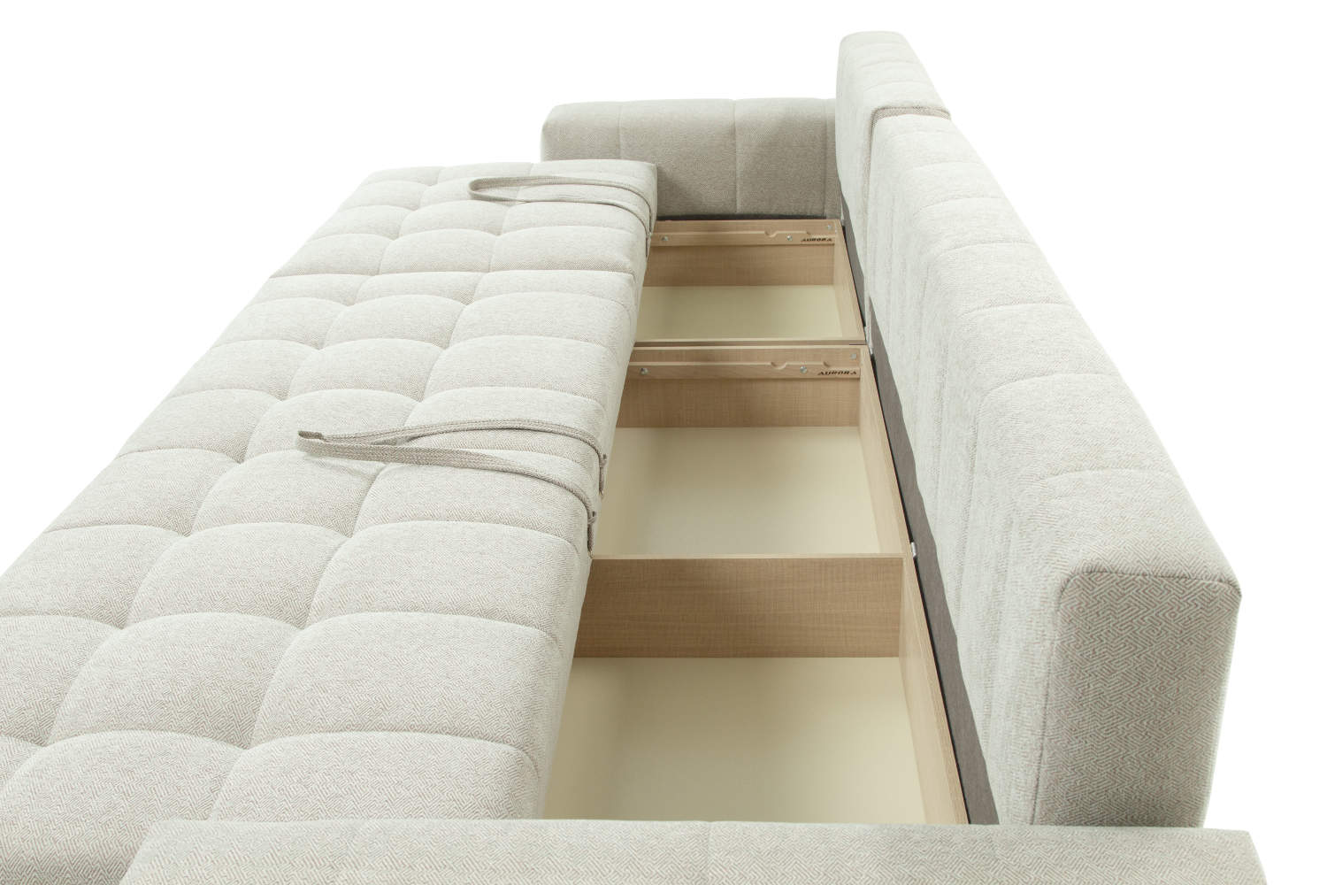 Модульная коллекция «Брайтон» — это сочетание технологий и минимализма. Особенностью коллекции является положение RELAX, которое увеличивает глубину сиденья на 30%. Подушки изготовлены из кокосовой койры — одного из самых экологичных и долговечных материалов. Благодаря своей специальной форме, они идеально подстраиваются под изгибы тела, усиливая эффект от положения RELAX. В основании дивана металлический каркас HEAVY METAL, с дополнительной гарантией 67 месяцев. Вы легко сможете разложить диван с помощью механизма «еврокнижка» со стальными направляющими AURORA STEEL. Ортопедическое наполнение AURORA FORM, сделает ваш сон здоровым и крепким. Уникальная система прошивки SOFT LINE обеспечивает пышность и мягкость форм, минимизируя растяжение ткани. В коллекции «Брайтон» большое количество мест для хранения.\