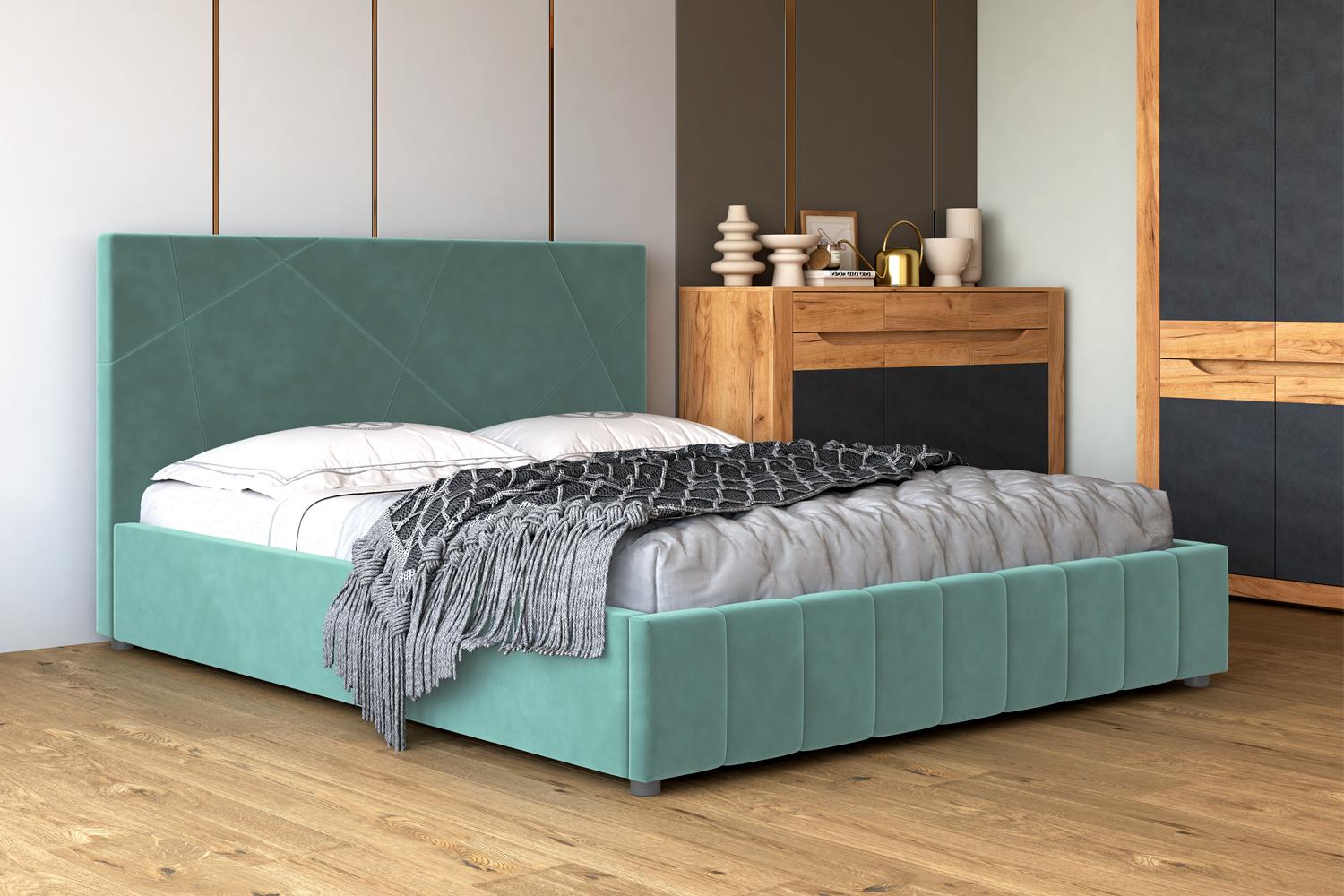 Кровать с мягким изголовьем Нельсон украшена стёжкографией в виде геометрического узора на спинке и изножье. Отделка придает декору строгости и лаконичности, а мягкая обивка - комфорта и роскоши. Интерьерная кровать Нельсон комплектуется металлокаркасом и дополнительно может быть оснащена подъемным механизмом с газовым амортизатором (газлифтом). Двуспальные мягкие кровати БРАВОмебель имеют надежный каркас из МДФ, фанеры и ЛДСП. В качестве наполнителя используются различные материалы, такие как холкон, поролон и периотек, которые обеспечивают мягкость, комфорт и долговечность изделия. Внешний слой обивки кровати выполнен из износостойкой качественной ткани.
