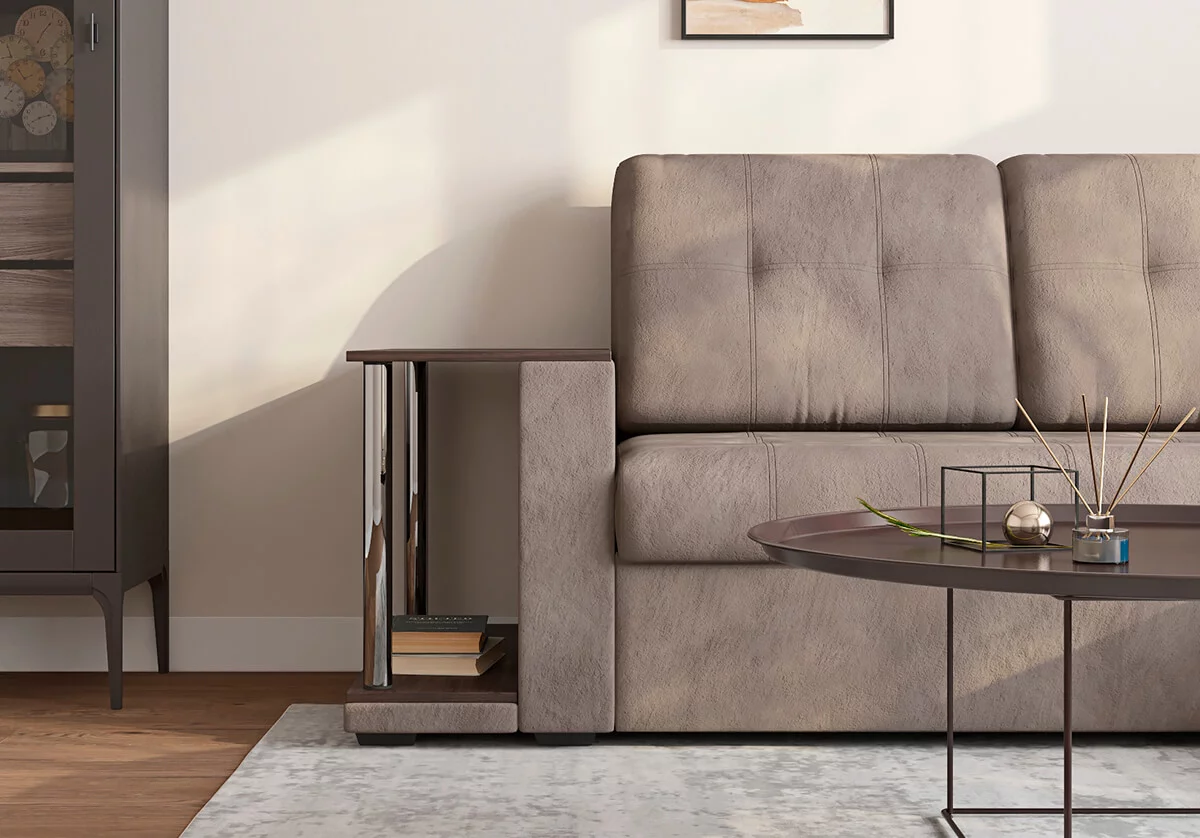 • Подлокотники: декоративная накладка из МДФ, кофейный столик.