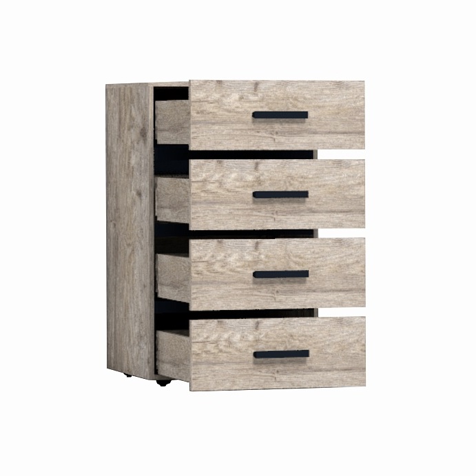 Для спальни отлично подойдет высокий комод Nature 45. Гладкие фасады ящиков в теплом декоре Дуб Табачный Craft с контрастными черными боковыми планками снизу делают его по-настоящему особенным. Четыре выдвижных ящика способны вместить все необходимое, а компактная конструкция сэкономит место в комнате. Ящики легко открываются благодаря направляющим полного выдвижения. Они быстро и легко устанавливаются при сборке комода. Регулируемые опоры компенсируют незначительные неровности пола.