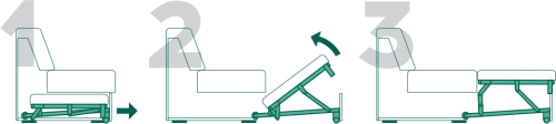 При трансформации диван находится вплотную к стене, раскладка производится в переднем направлении.