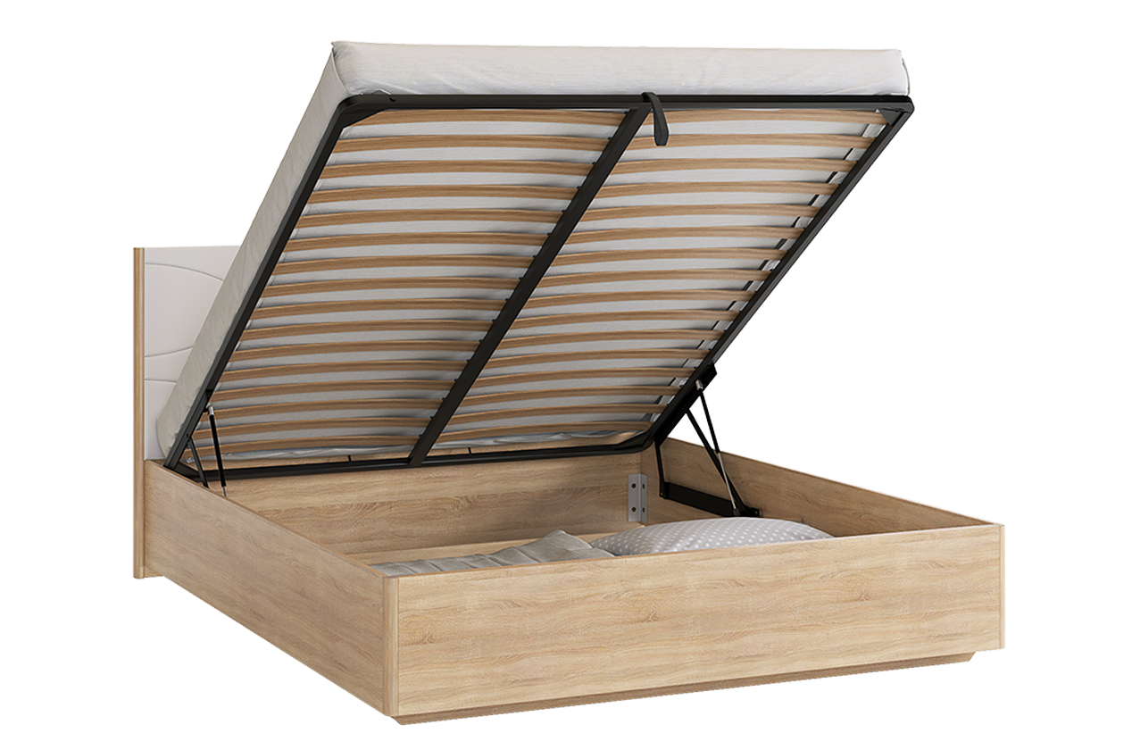 Комфортный сон обеспечит ортопедическое основание. Основание подъемное и может быть оснащено дополнительным настилом, что обеспечит Вас дополнительным местом для хранения белья или вещей.