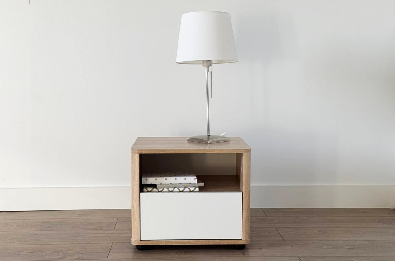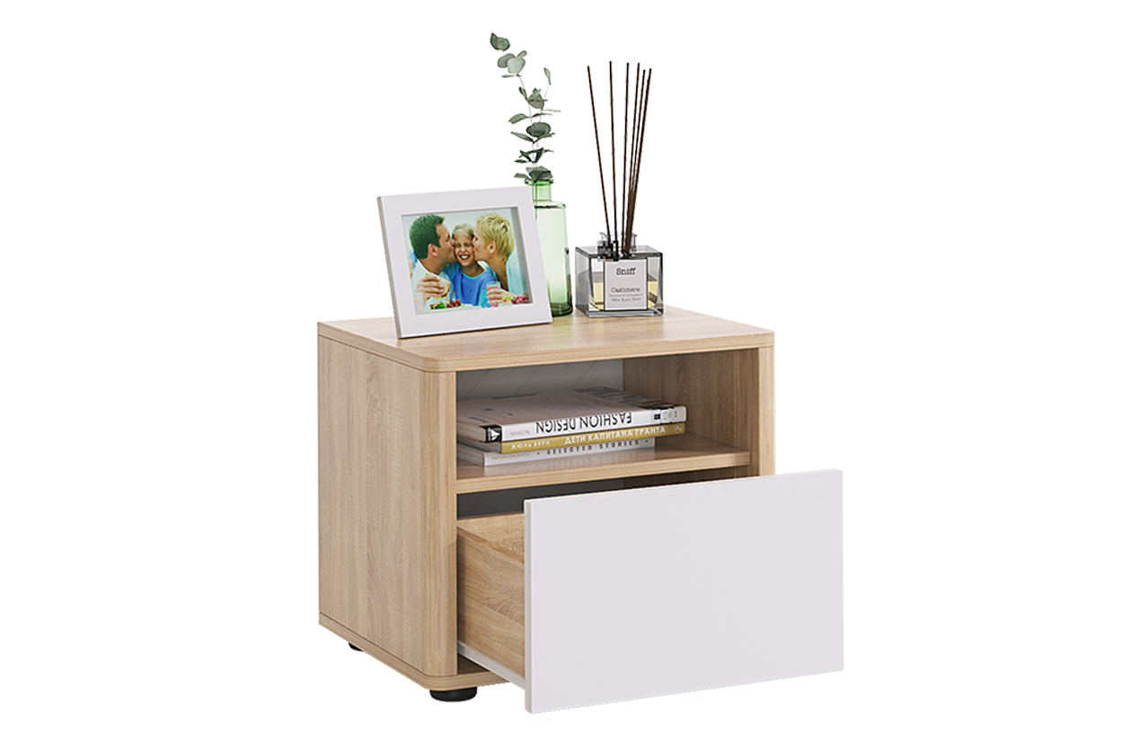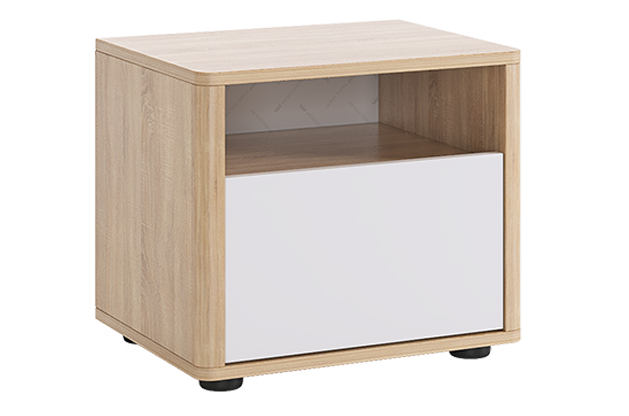 Прикроватная тумба Зара - это отличное дополнение к любой спальне. Ее аккуратный дизайн включает в себя выдвижной ящик и открытую нишу для удобного хранения ваших личных вещей. Особое внимание уделено безопасности: углы тумбы аккуратно скруглены, исключая острые выступы, что делает ее идеальным решением для спальни.