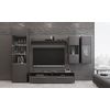 Стеклянные тонированные фасады и полки, сочетание элегантных глянцевых каркасов и красивого фасада текстуры "Джут" делает вид гостиной завершенным и эстетичным. Современный дизайн модели дополняет качественная лицевая фурнитура, которая придает дополнительную элегантность изделиям своей формой и сиянием хрома. Ножки-опоры шкафов и тумбы смещены под каркасы, что создает эффект парения в воздухе.